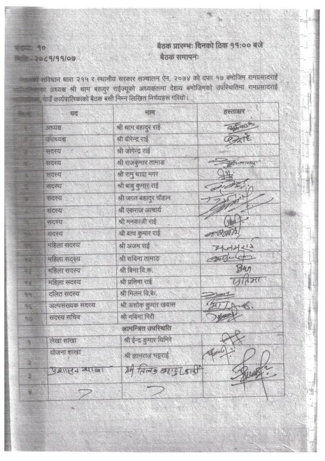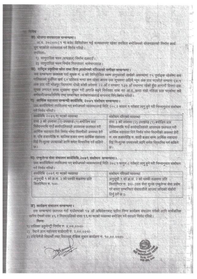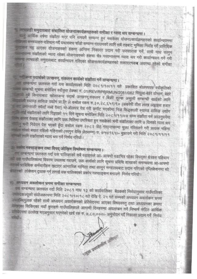 गाउँ कार्यपालिकाको बैठकको निर्णयहरु- बैठक संख्या १० - मिति २०८१/११/०७