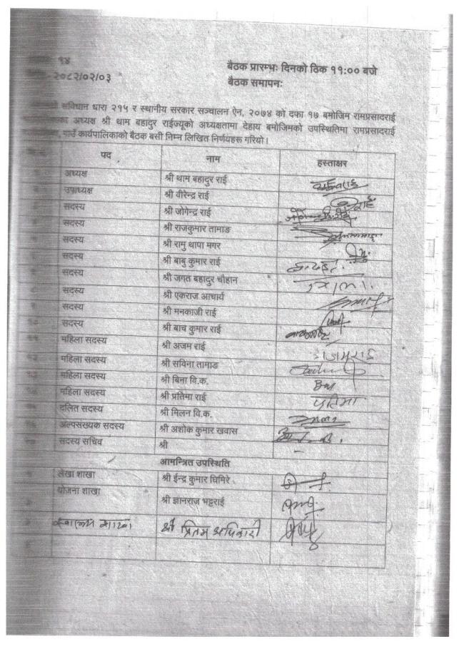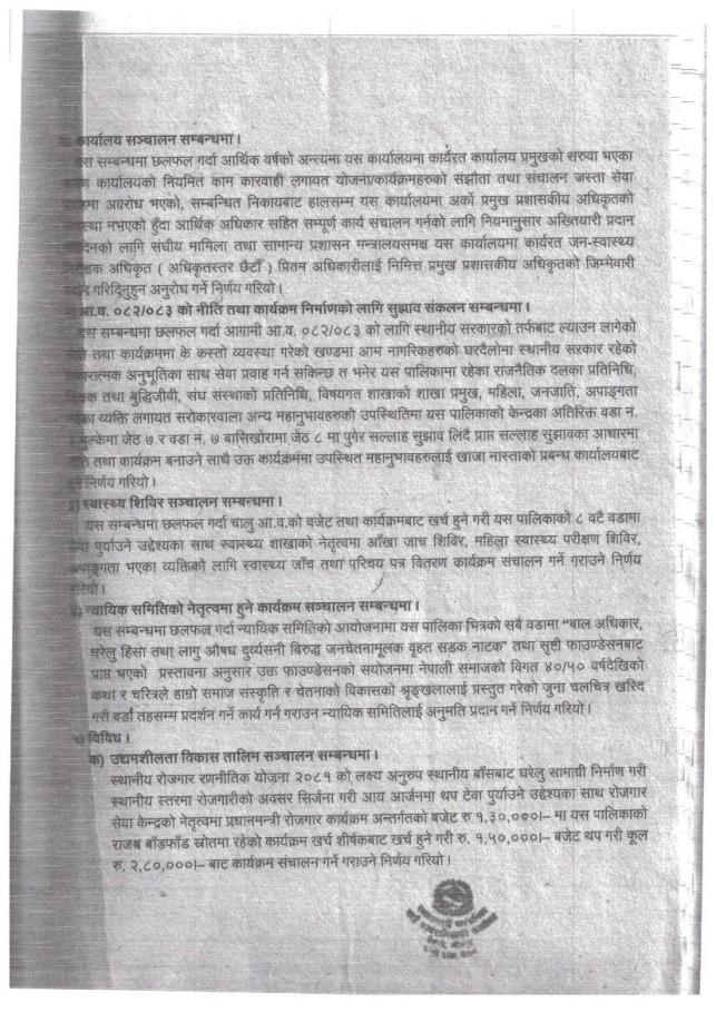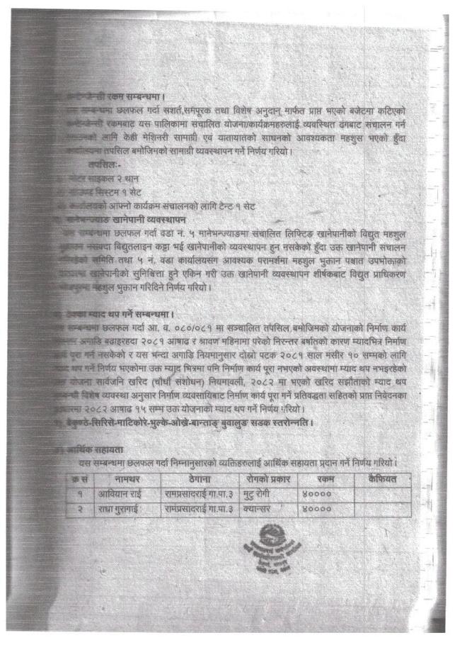 गाउँ कार्यपालिकाको बैठकको निर्णयहरु- बैठक संख्या १४ - मिति २०८२/०२/०३