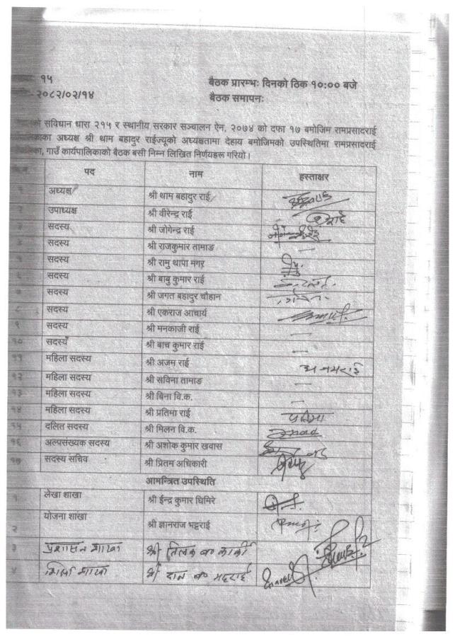 गाउँ कार्यपालिकाको बैठकको निर्णयहरु- बैठक संख्या १५ - मिति २०८२/०२/१४