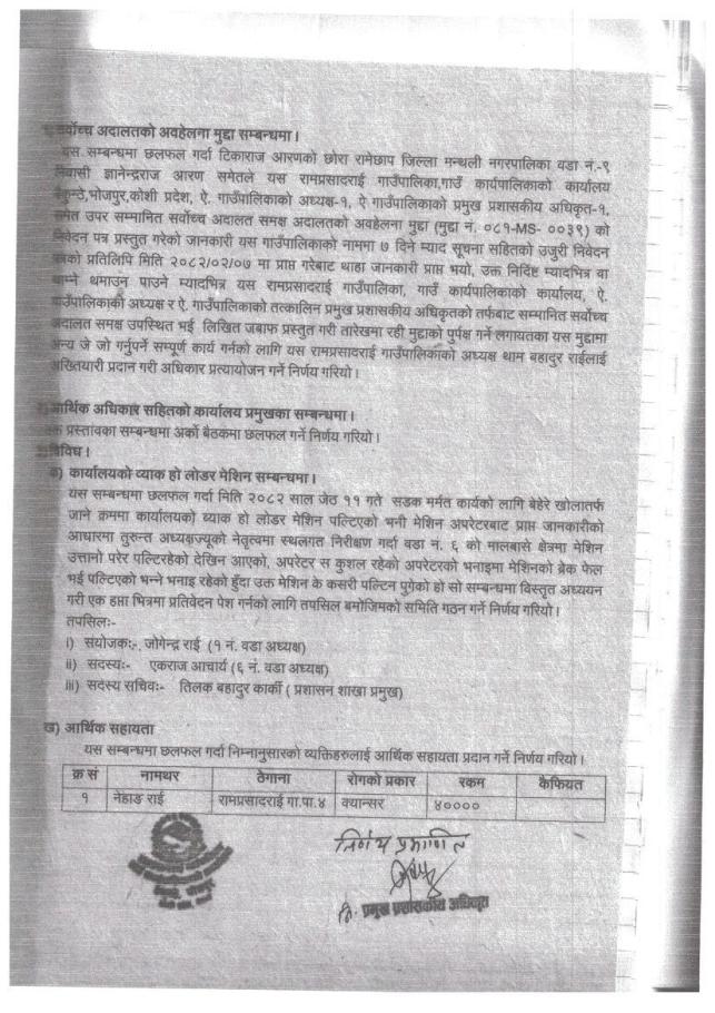 » गाउँ कार्यपालिकाको बैठकको निर्णयहरु- बैठक संख्या १५ - मिति २०८२/०२/१४
