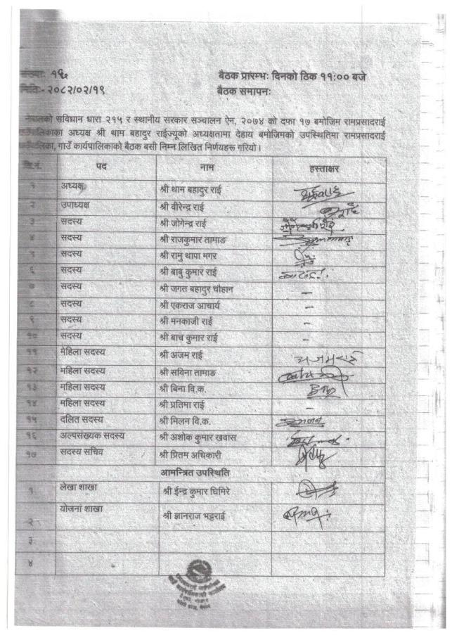 गाउँ कार्यपालिकाको बैठकको निर्णयहरु- बैठक संख्या १६ - मिति २०८२/०२/१९