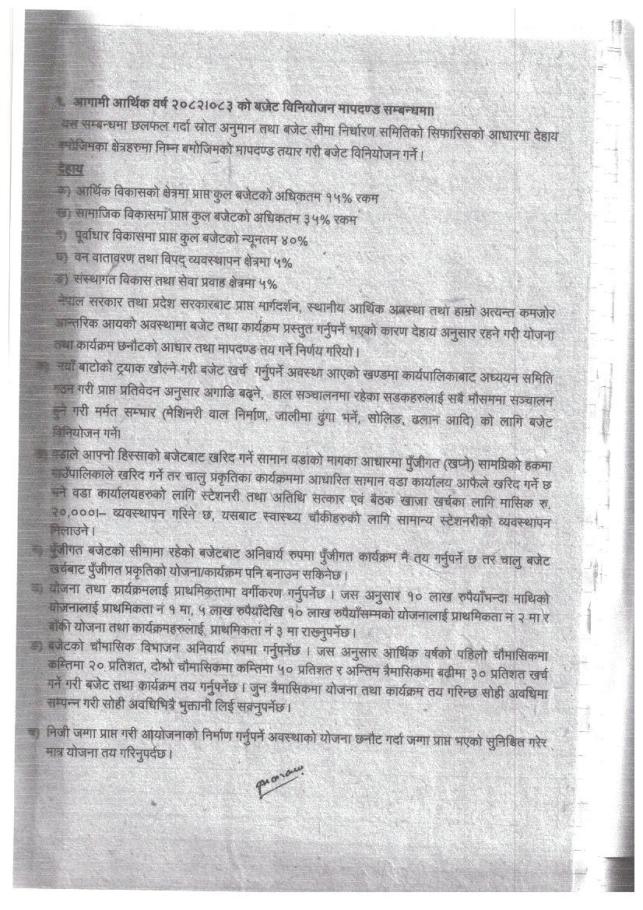 गाउँपालिकाको विषयगत शाखाहरुको निर्णयहरु