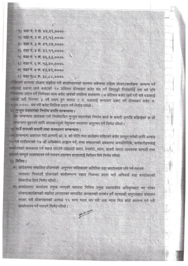 गाउँ कार्यपालिकाको निर्णयहरु
