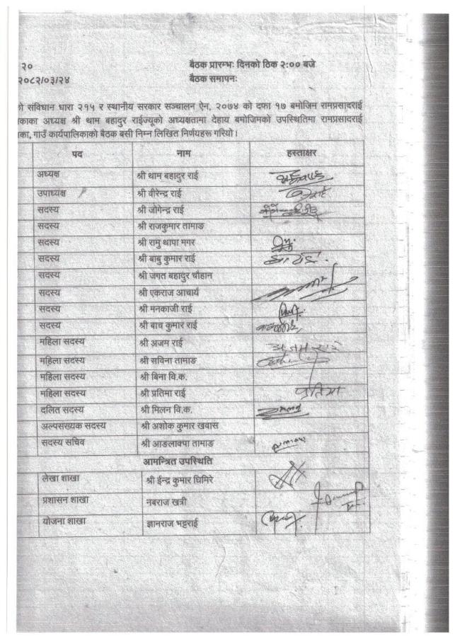 » गाउँ कार्यपालिकाको बैठकको निर्णयहरु- बैठक संख्या २० - मिति २०८२/०३/२४
