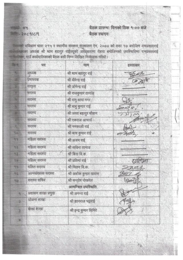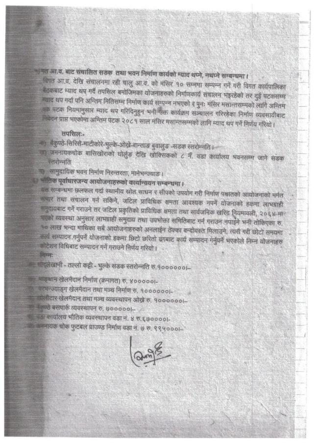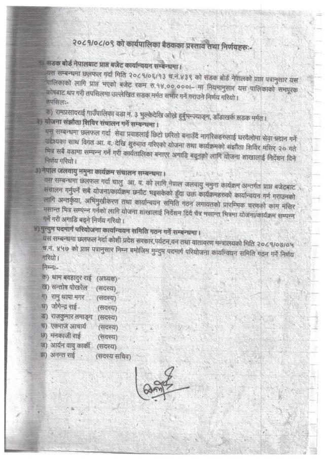 गाउँ कार्यपालिकाको बैठकको निर्णयहरु- बैठक संख्या ५ - मिति २०८१/०८/०९