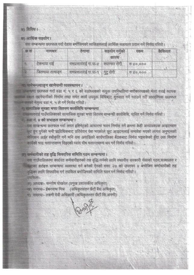 गाउँपालिकाको विषयगत शाखाहरुको निर्णयहरु