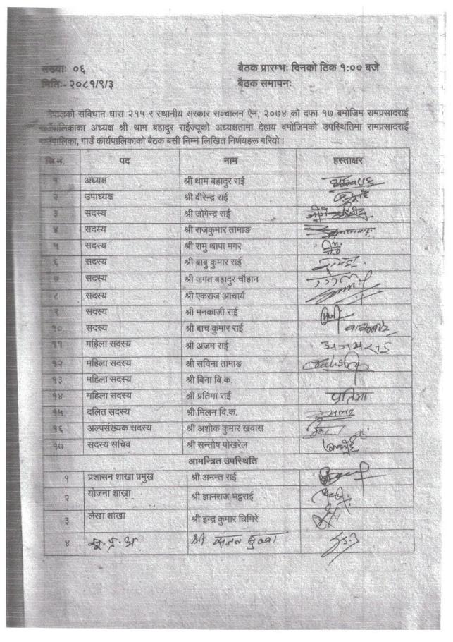 » गाउँ कार्यपालिकाको बैठकको निर्णयहरु- बैठक संख्या ६ - मिति २०८१/०९/०३