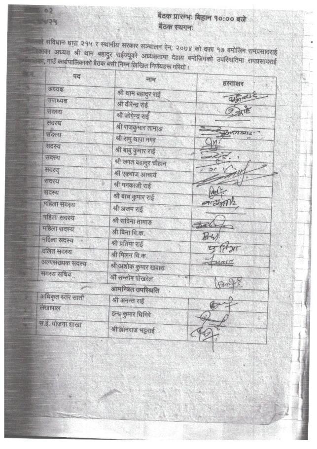 गाउँ कार्यपालिकाको निर्णय
