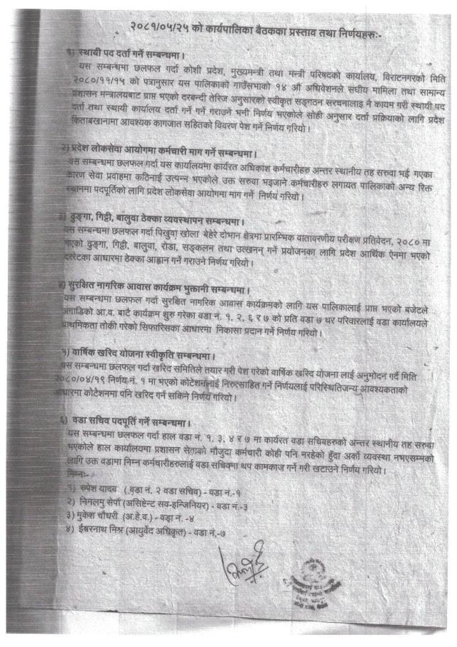गाउँ कार्यपालिकाको निर्णयहरु