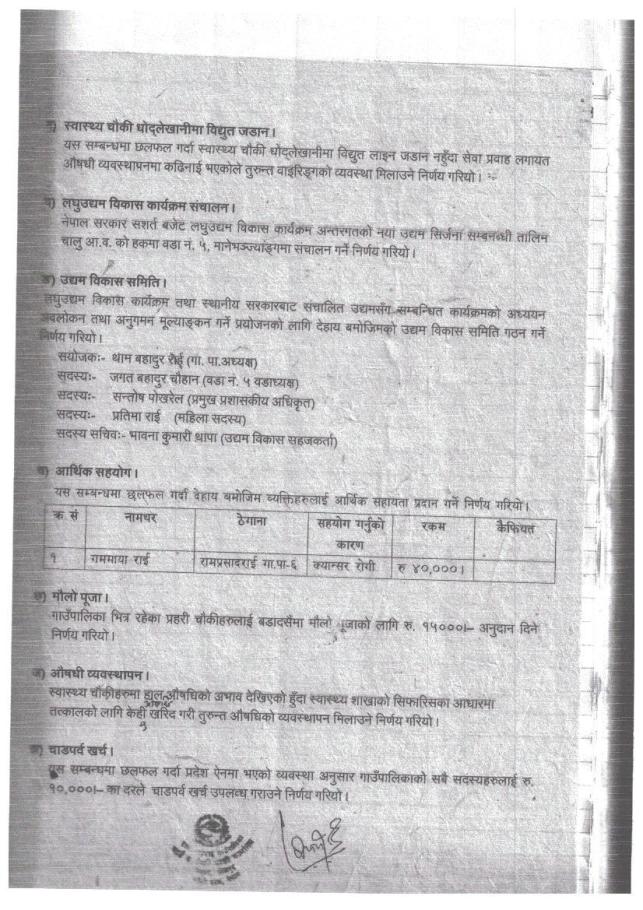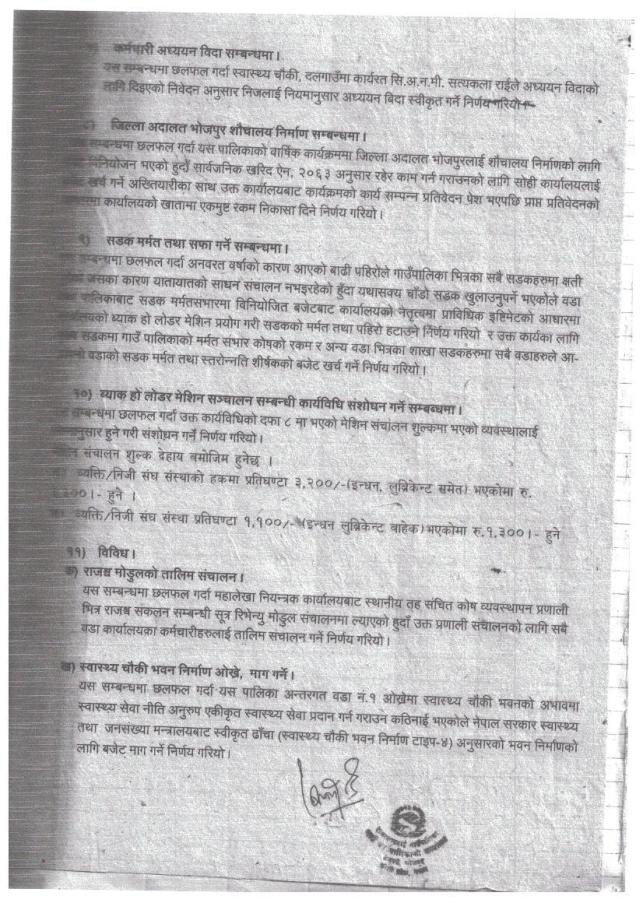 गाउँपालिकाको विषयगत शाखाहरुको निर्णयहरु