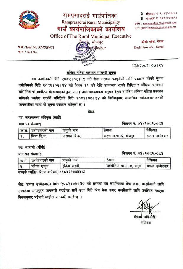 » अन्तिम नतिजा प्रकाशन सम्बन्धी सूचना
