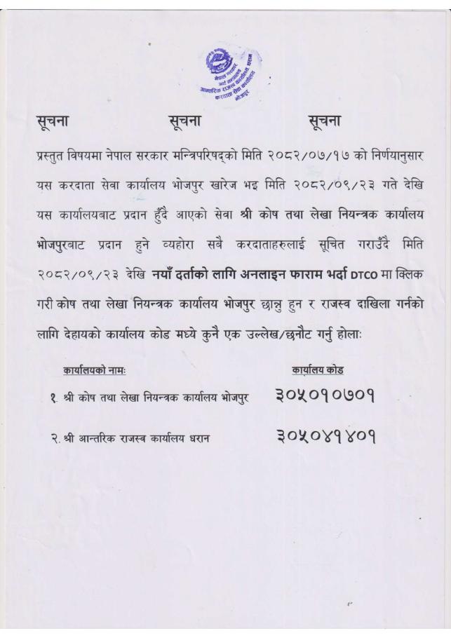 करदाताहरुलाई सेवा प्रदान गरिने सम्बन्धी सूचना ।।