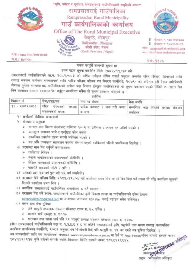 गणक पदपुर्ति सम्बन्धी सूचना ।