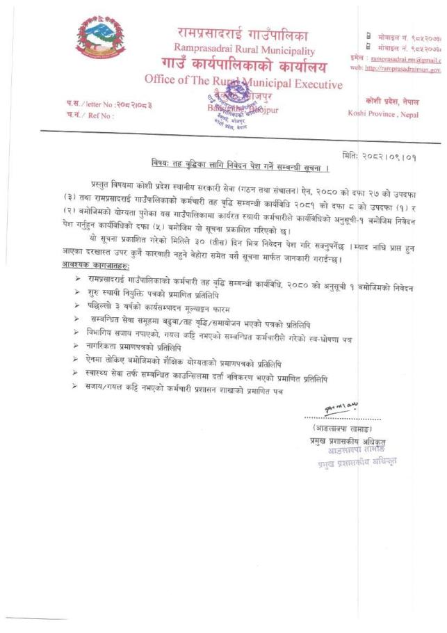 तह वृद्धिका लागि निवेदन पेश गर्ने सम्बन्धी सूचना ।