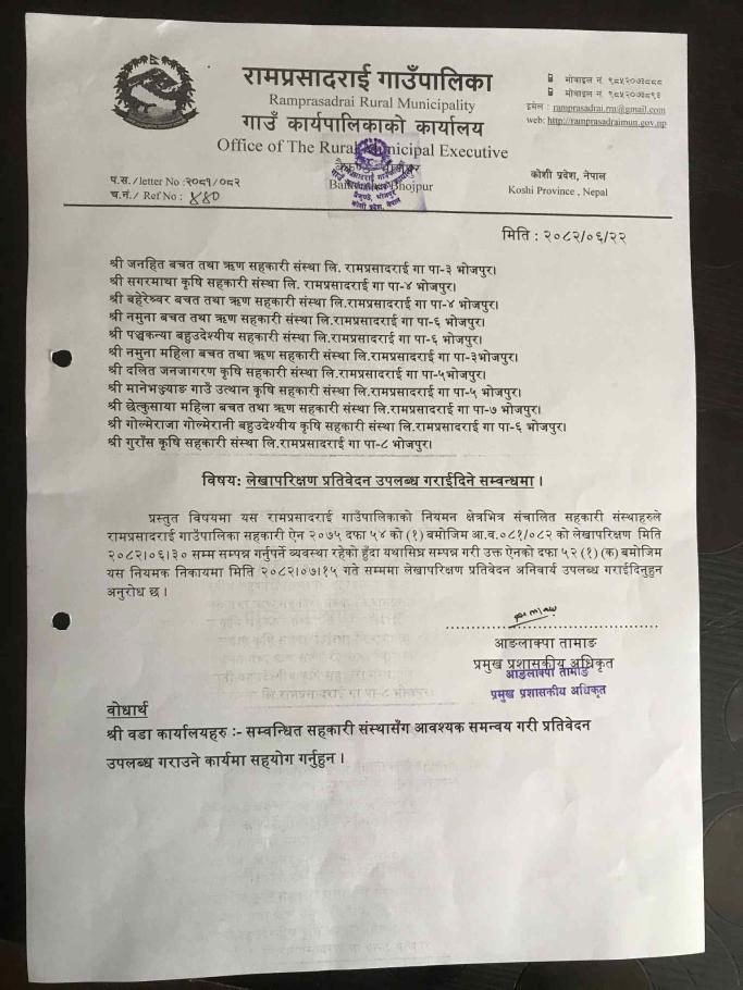 » लेखापरिक्षण प्रतिवेदन उपलब्ध गराईदिने सम्वन्धमा