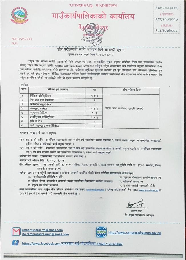 » सीप परीक्षणको लागि आवेदन दिने सम्बन्धी सूचना ।
